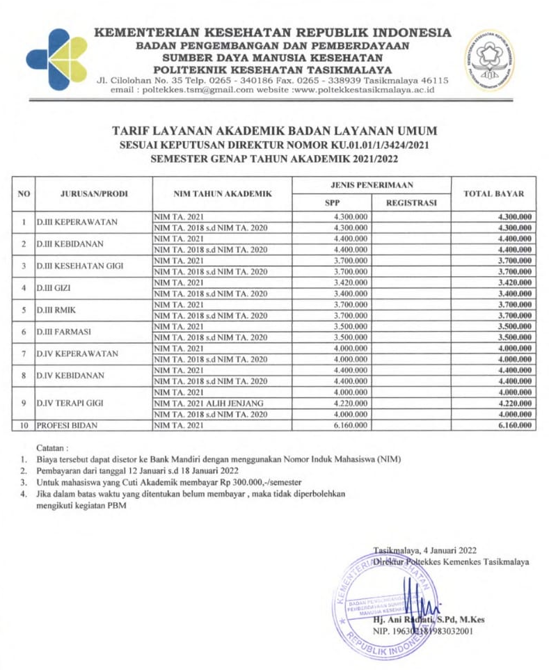 Berikut Daftar Tarif Layananan Akademik BLU TA 2021/2022 :