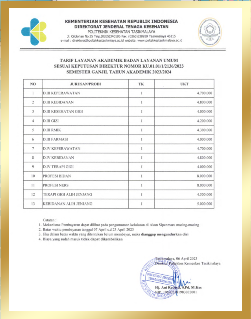 2. Batas waktu pembayaran tanggal 07 April s.d 23 April 2023
